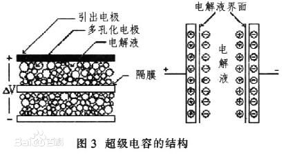 超級電容器,又叫電化學電容器、黃金電容、法拉電容,;包括雙電層電容器(和贗電容器,通過極化電解質來儲能。它是一種電化學元件,但在其儲能的過程并不發生化學反應,這種儲能過程是可逆的,也正因為此超級電容器可以反復充放電數十萬次。超級電容器可以被視為懸浮在電解質中的兩個無反應活性的多孔電極板,在極板上加電,正極板吸引電解質中的負離子,負極板吸引正離子,實際上形成兩個電容性存儲層,被分離開的正離子在負極板附近,負離子在正極板附近。