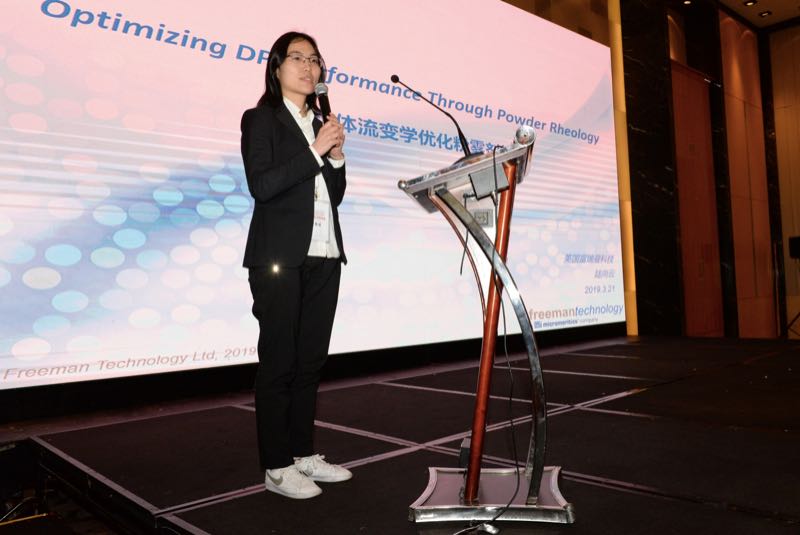 3月20日,來自美國麥克儀器公司的產品專家陸向云在研討專題會中為大家介紹了"先進的粉體表征方法用于 DPI 的配方和工藝優化以及 QA/QC"。美國麥克儀器公司的產品專家介紹了公司先進的材料表征方法及其理論基礎,并在現場為大家演示了FT4粉體流變儀的實際操作。值得一提的是,美國麥克儀器公司去年完成了對英國富瑞曼科技有限公司的收購,公司此次攜FT4粉體流變儀亮相DPI China研討會。