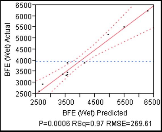 圖一:濕顆粒基本流動能(BFE)的實際與預(yù)測值