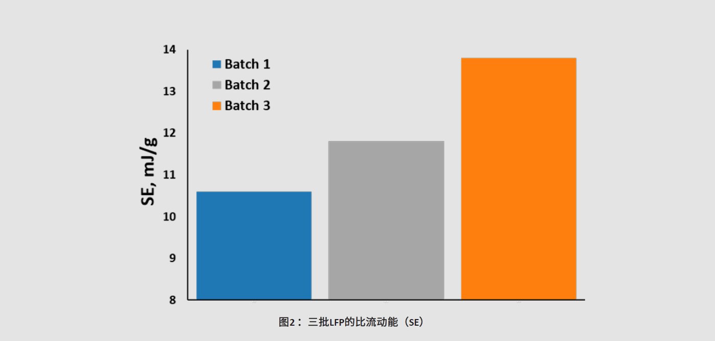 圖 2 顯示了三個批次的 SE 值。批次 1 較低的值說明顆粒間機械咬合和摩擦作用減少。表明顆粒不易團聚,可以更均勻地分散。生產(chǎn)經(jīng)驗說明批次 1 獲得的漿料更均勻,從而生產(chǎn)得到更高收率的電極。批次 2 和批次 3 的 SE 值更高,在生產(chǎn)中表現(xiàn)不一致,發(fā)生故障導(dǎo)致系統(tǒng)停機和規(guī)格不符。