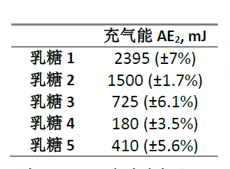 表2:2mm/s氣流速度下的充氣能(AE2)