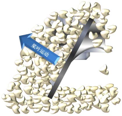 動(dòng)態(tài)測(cè)試采用獨(dú)特的測(cè)量技術(shù)來(lái)確定粉體的流動(dòng)阻力。特殊形狀的槳葉沿著既定的路徑穿越精確體積的粉體。當(dāng)槳葉軸向移動(dòng)和旋轉(zhuǎn)時(shí),作用于其的阻力和扭矩,組合產(chǎn)生總流動(dòng)能值[1]。