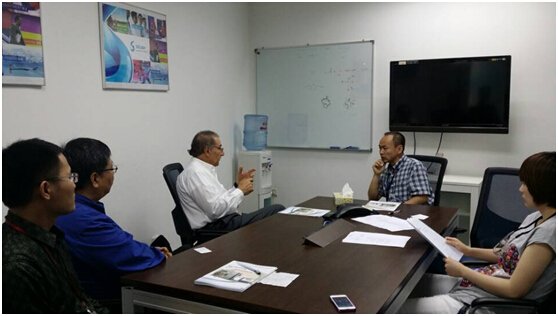 Simon博士在索爾維中國投資有限公司與客戶交談